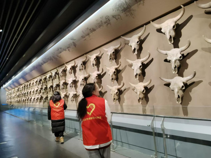 从远古时代的生物化石到古代人类文明的发展历程,以时间为轴,清晰地勾勒出油城大庆这片土地斗转星移的历史变迁。经过志愿者的热心讲解,游客们了解了大庆古代、近代历史、油田开发建设史、现代化城市建设史,看到了极具地域特色的草原、湿地、珍惜兽类标本、禽类标本等,近距离观察远古时代的恐龙、猛犸象、披毛犀等古生物化石,详细了解了大庆的自然环境和历史文明。