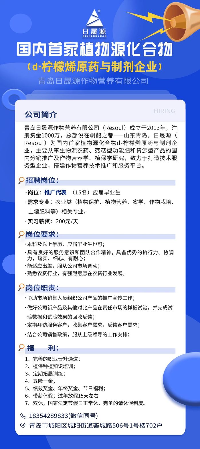 就业信息播报 | 青岛日晟源作物营养有限公司