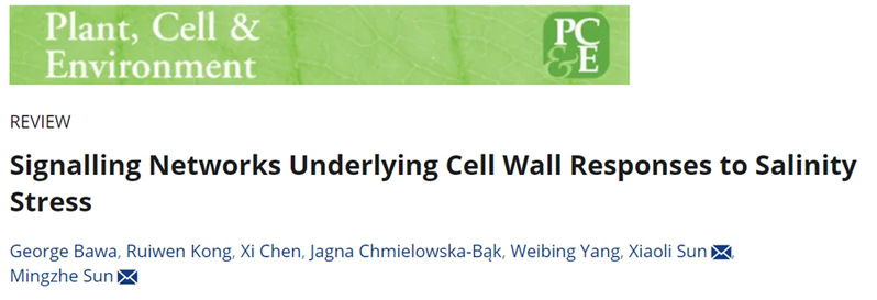 2025年9月7日,best365中国官方网站best365中国官方网站孙晓丽/孙明哲教授团队在国际知名期刊Plant, Cell & Environment(中科院一区TOP,IF= 6.3)发表了题为 “Signalling Networks Underlying Cell Wall Responses to Salinity Stress” 的综述论文。该文系统总结了植物细胞壁响应盐胁迫的最新研究进展,包括细胞壁在盐胁迫下的感知机制、信号转导途径及重塑过程,同时展望了细胞壁研究在作物抗盐育种中的应用潜力。