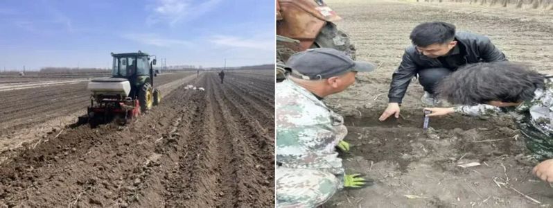 2025年4月,农业资源与环境系老师蒋雨洲带领研究生王甲、崔馨宇到黑龙江省安达市开展春耕工作,开展玉豆轮/连作下不同施肥措施的作物生长状况及土壤质量的变化研究等工作,通过土壤结构的优化、作物产量与品质的提升、生态农业模式的推广等工作,全面评价不同施肥措施对东北黑土区玉豆轮作/连作田土壤与作物产量的影响,为制定科学合理的农业管理措施和可持续的增产增收方案提供坚实基础。