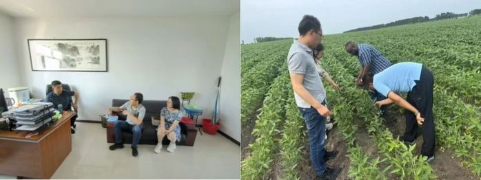 7月10日,孙晓丽教授、孙明哲教授作为科技特派员赴五大连池市建设乡,深入田间查看大豆苗情与土壤状况,识别病害苗头并现场给出防治建议,推广选种、密植、绿色防控等节本增效栽培技术。