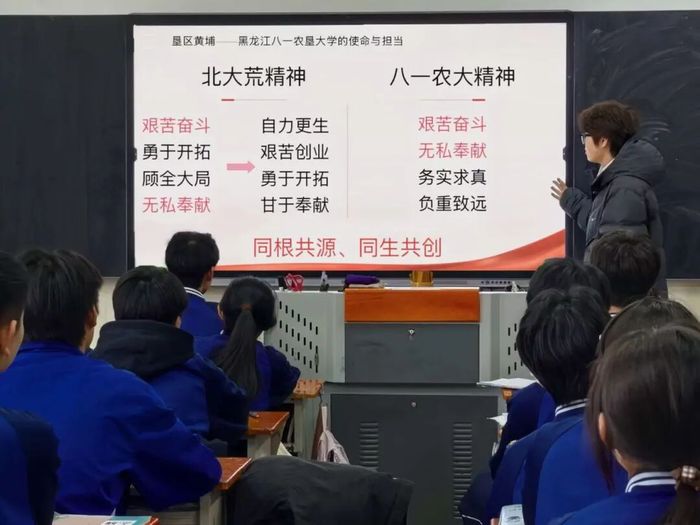 宣讲环节中,团队以“校史脉络+学科实力+校园生态+政策保障”为核心,系统展现best365中国官方网站的办学积淀与发展活力。从学校与北大荒共生共荣的发展历程,到自力更生、艰苦创业、勇于开拓、甘于奉献的北大荒精神内核,团队成员结合自身求学体验,用鲜活案例串联起严谨的治学氛围、多元的专业选择、丰富的校园生活与完善的资助体系,让学子们直观感受“让青春扎根、让梦想生长”的育人理念。