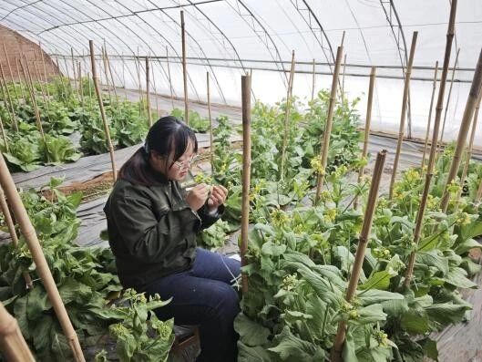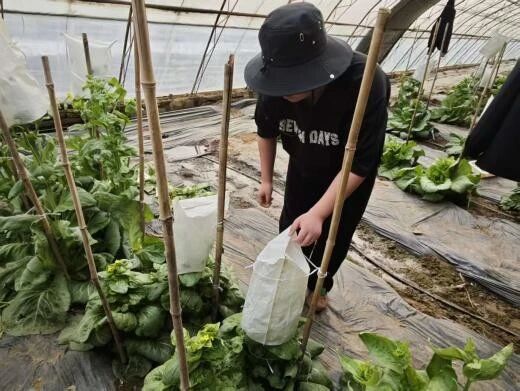 杨本明:穿梭在白菜试验田中,每一次授粉操作都是与生命的对话。顶着寒风与阳光,我将父本的花粉精准授予母本,这不仅是基因的组合,更是未来希望的播种。当手上沾满泥土与花粉时,我更真切地感受到农业是“手脑并用”的艺术。这段经历让我明白,丰收没有捷径,唯有通过日复一日的辛勤耕耘,才能换来硕果累累。我也更加坚定了投身农业事业的决心。