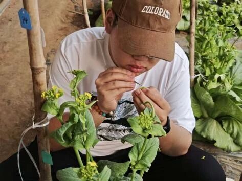 闫佳俊:在白菜杂交授粉的实践中,我领悟到科学研究往往藏在“方寸”之间。从花序的整理到柱头的触碰,每一个细节都决定着种子的成败。通过反复练习,我逐渐掌握了手感与时机,也意识到严谨的数据记录远比盲目忙碌更重要。工作虽枯燥,却培养了我专注的品质。农业的魅力,正在于这份在细微处雕琢希望的“匠心”,也让我更加敬畏脚下的土地。