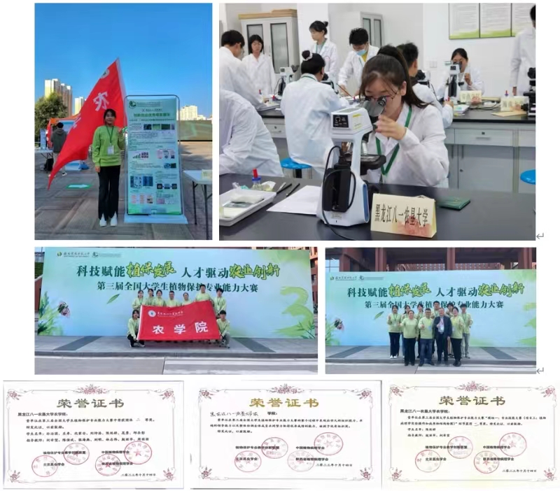 公司植物保护专业孙治国、陈廷婷、兰卓、晁勇、沈家安、刘仲浩等本科生在植物保护学科带头人左豫虎教授,以及学科青年教师柯希望、张海燕、陈佳欢等的带领下参与了此次大赛。公司参赛员工参加了3大模块中7个小项的比赛,包括昆虫微景观展示与现场标本制作项目、植物病虫害识别、植物病理学实验操作和病原物结构绘图、昆虫解剖和结构绘图、创新创业优秀项目展示、本科生学术交流报告等。比赛过程中公司员工表现优异,展现了良好的精神风貌和专业技能,荣获团体二等奖1项,陈廷婷同学在植物病理学实验操作和病原物绘图项目中荣获二等奖1项,公司参赛师生的优秀表现也获得了组委会的认可,荣获优秀组织奖1项。